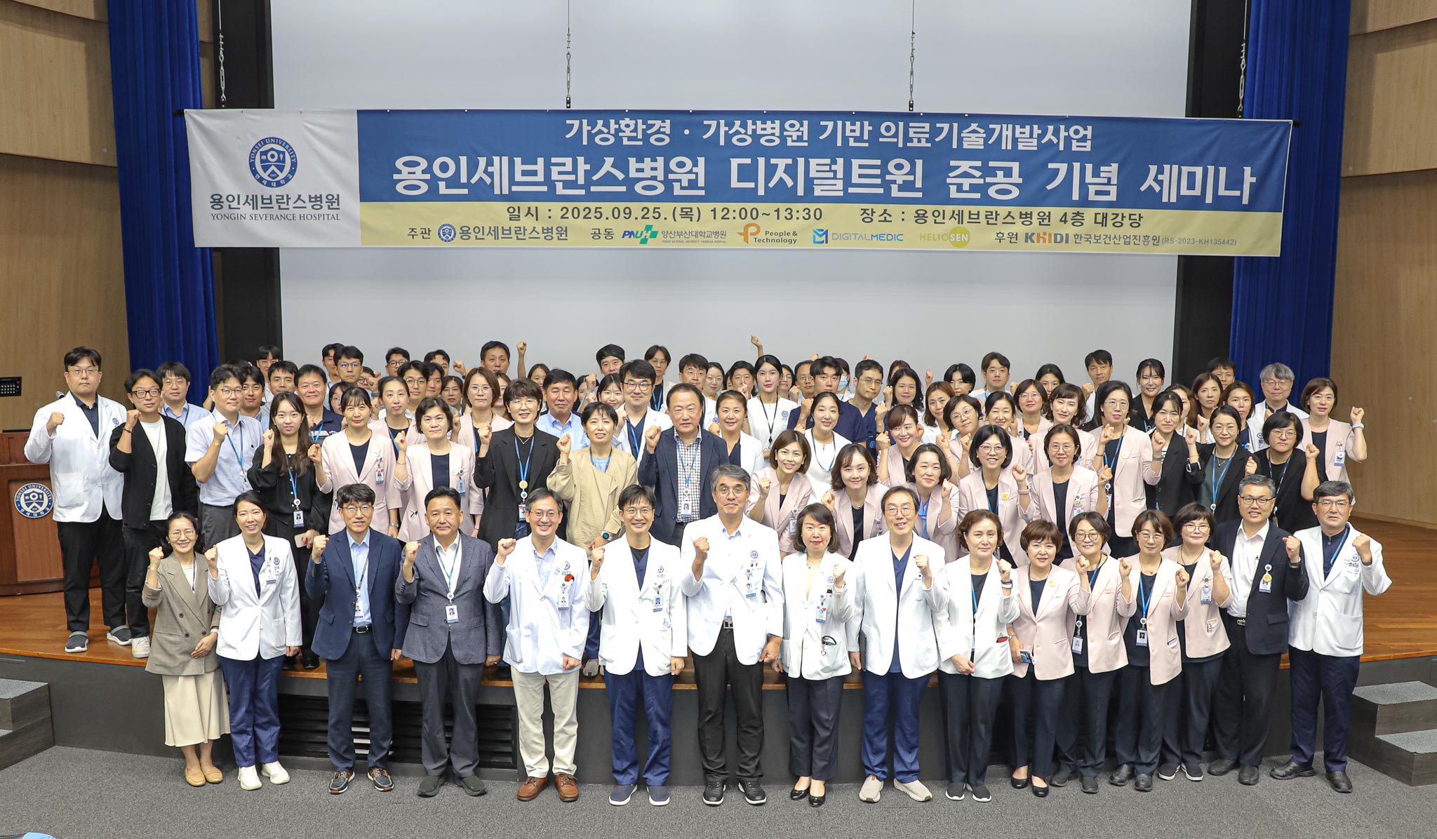 ▲ 9월 25일 용인세브란스병원 대강당에서 열린 ‘디지털 트윈 준공 기념 세미나’에서 참석자들이 기념사진을 촬영하고 있다.